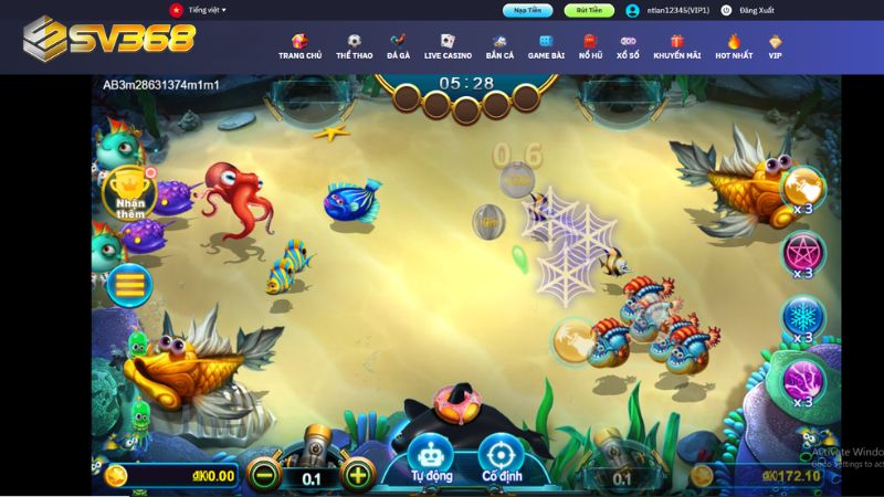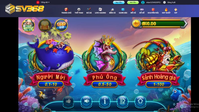 Bắn cá CQ9 tại SV368 là trò chơi đổi thưởng hấp dẫn, nơi người chơi sử dụng súng để tiêu diệt cá và nhận về tiền thưởng tương ứng. Mỗi loài cá có một mức điểm khác nhau, cá càng lớn hoặc hiếm thì phần thưởng càng cao. Hội viên sẽ bắt đầu với một lượng đạn nhất định và có thể mua thêm nếu hết.