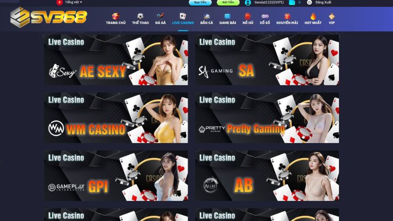 Các sảnh Live Casino được yêu thích nhất tại SV368